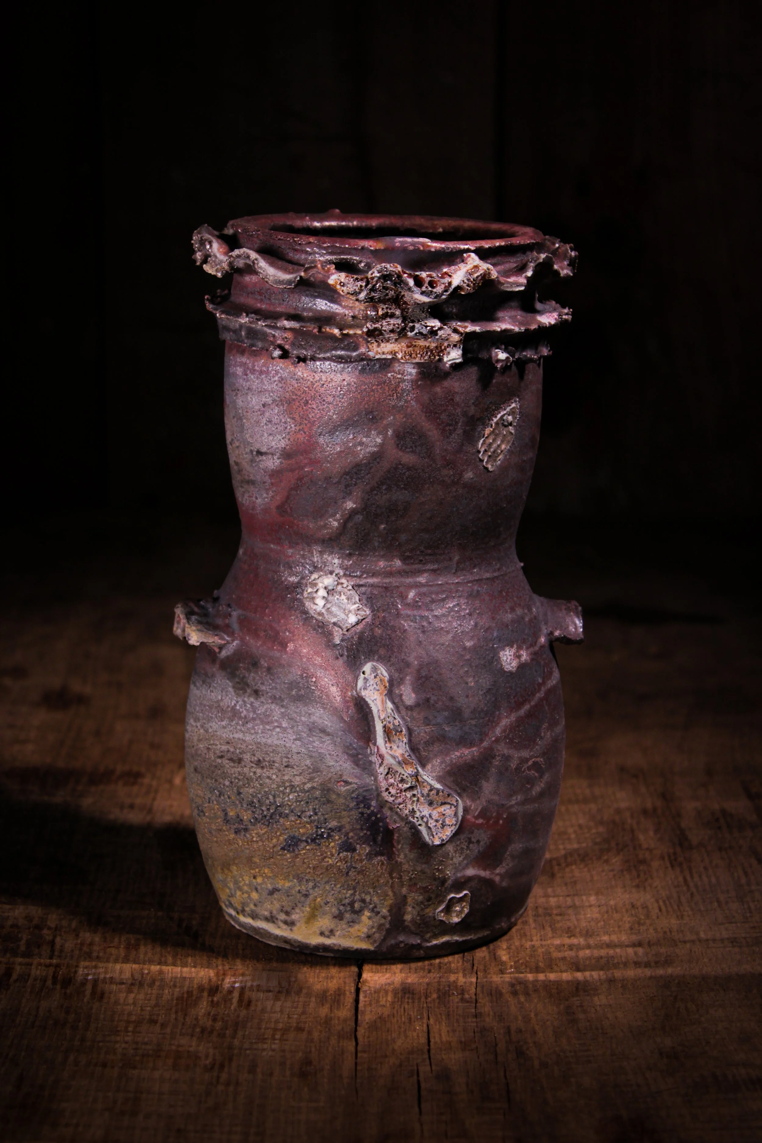 I work in this barely-controlled, intangible area without definition, axioms, or universal truths. The uncontrollable material of wild clay, and the uncontrollable process of wood firing are suited to this way of working.